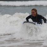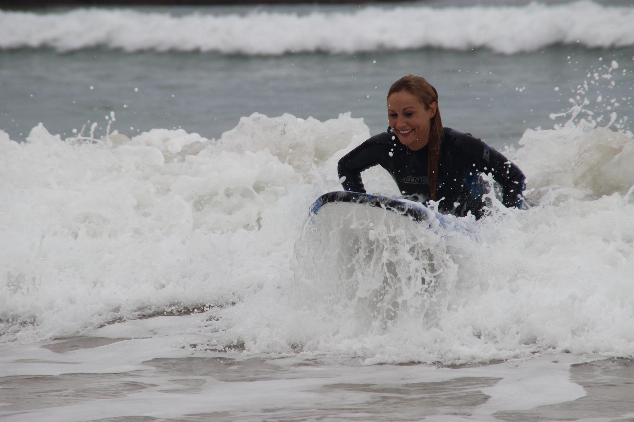 Casi todos han partido de cero. Han tenido que aprender a encerar su tabla, a levantarse, a leer la ola, a preguntarse cómo se consigue hacer un movimiento determinado… cada uno a su nivel, todos nos hemos caido mil veces para levantarnos e intentarlo de nuevo, pero lo realmente importante es que TODOS HEMOS DISFRUTADO.  Y esto es lo positivo que saco de esta experiencia.